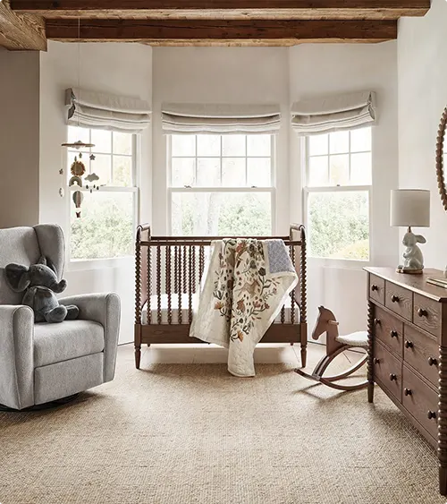 Everything’s white and wood and cream. It’s one of those rooms that could work for any age, really. Just swap out the crib later and you’re good.