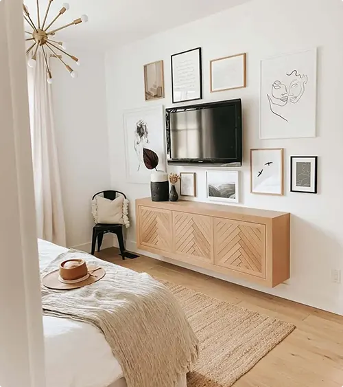 But here’s the good news. Your TV wall can actually become one of the best parts of your bedroom. You can style it, frame it, or build something around it that makes the whole room feel more put together.