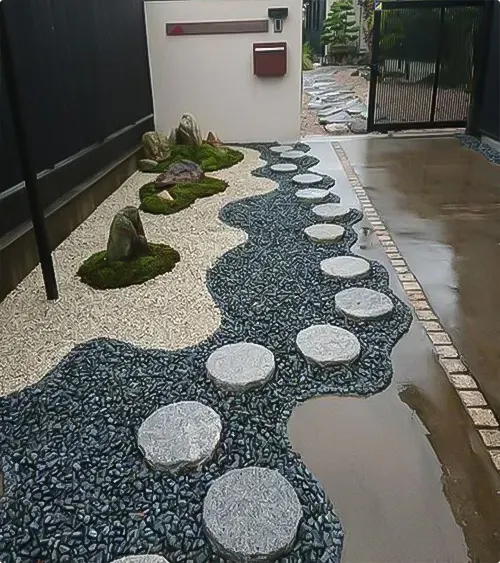 For tight spaces between houses, this kind of intentional pattern makes the area feel designed instead of leftover. It’s functional but also pretty to look at.
