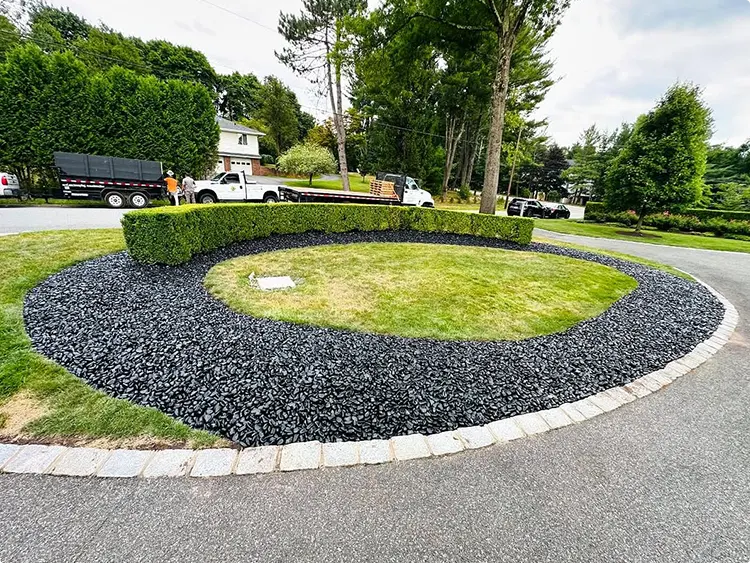 If you have a circular driveway, adding rock like this turns it into a design feature instead of just pavement. It’s functional art.