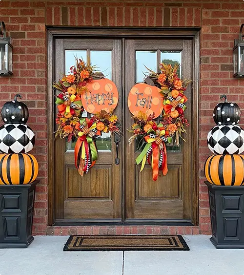 Those oversized pumpkin wreaths are so fun and festive. They turn your entrance into a full Halloween moment.