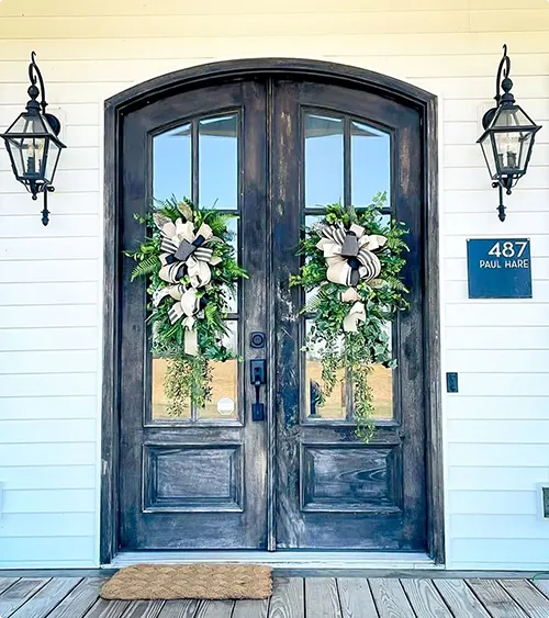 Black Doors With Neutral Wreaths
