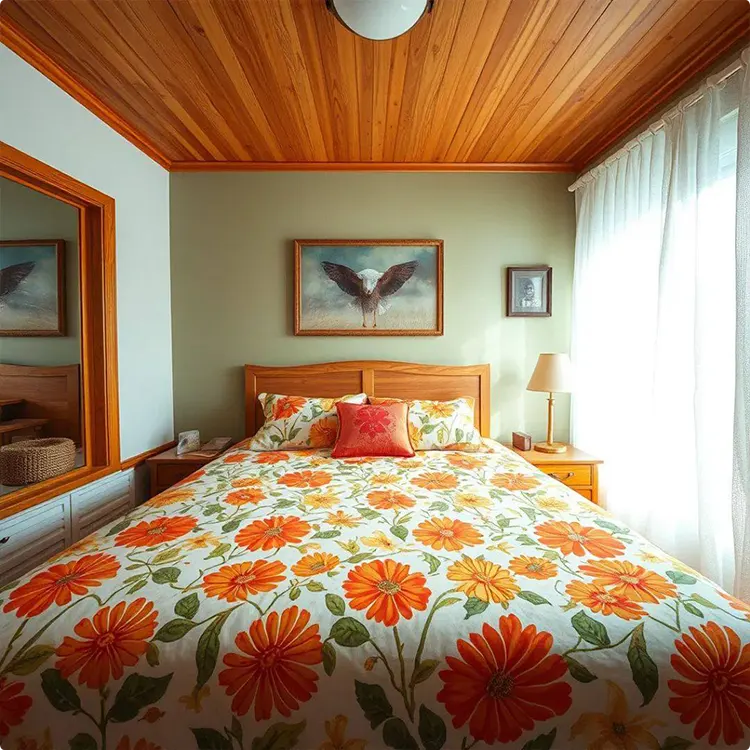 Groovy 70s Floral Bedroom With Vintage Pendant