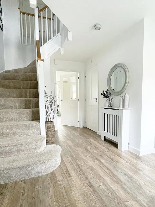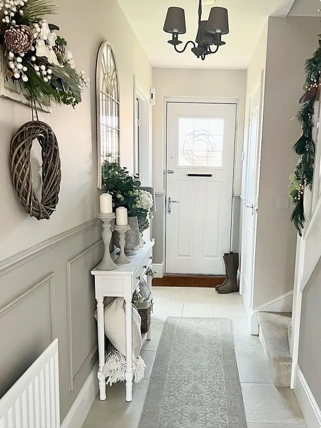 The best part? This palette is basically a blank canvas. You can lean modern with sleek lines and minimal decor. Or go cozy farmhouse with shiplap and vintage finds. Maybe you’re more of a glam person—throw in some mirrors and metallic accents, and suddenly your hallway feels like a boutique hotel entrance.