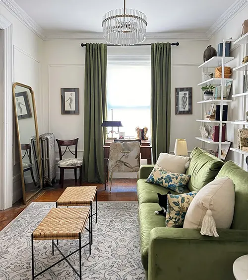 Can a green couch work in a small living room?