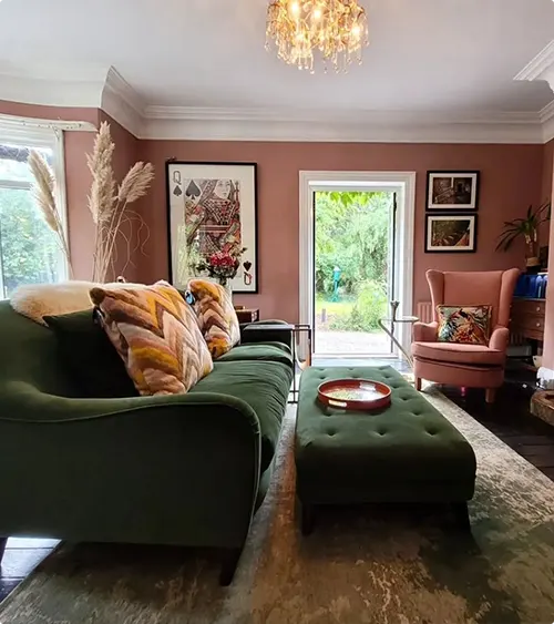 How do I style a green velvet couch?