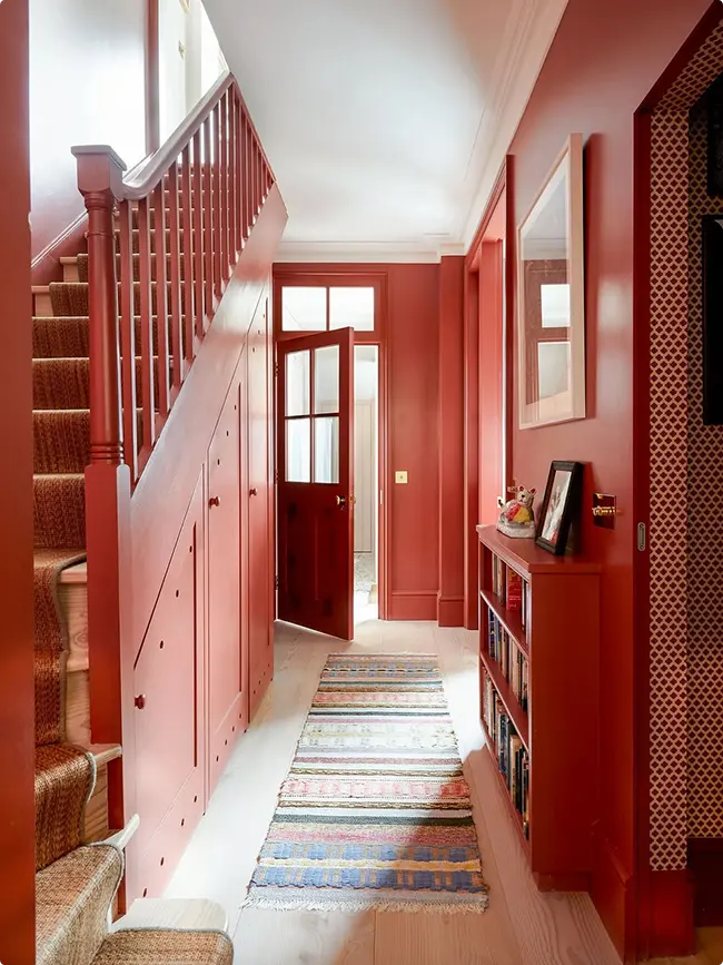 But hallways can handle bold colors better than you’d think. Since you’re just passing through, a dramatic shade won’t feel overwhelming.