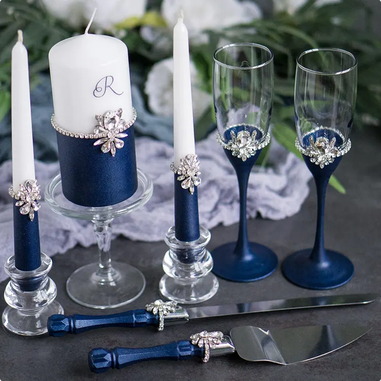 Small navy pieces are easy to add anywhere. Candles, vases, trays—little things matter.