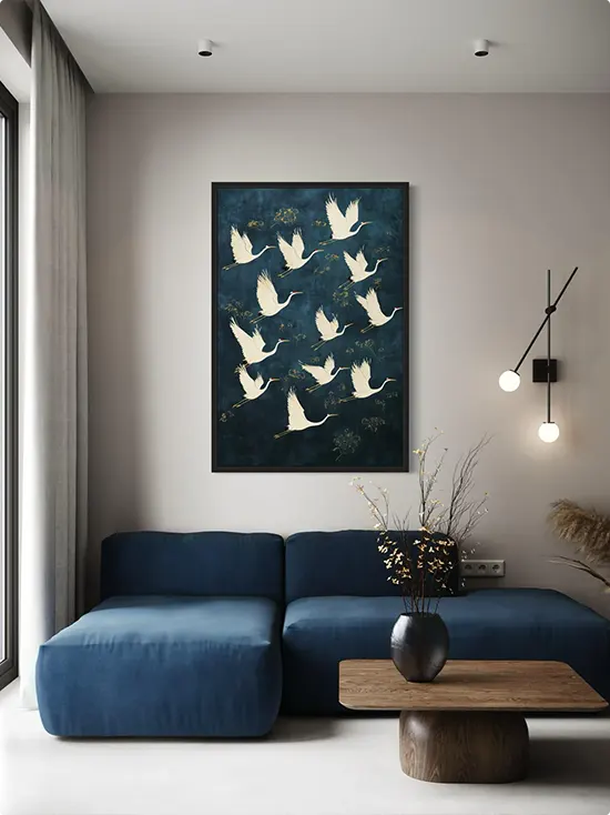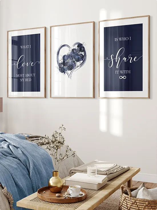 Navy artwork stands out best on light walls. White or gray works perfectly.