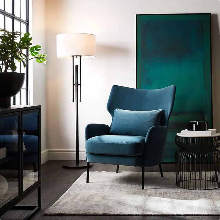 Accent chairs in navy add pattern and shape. They break up plain furniture.