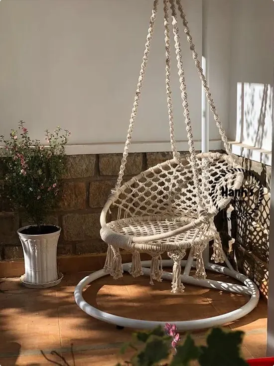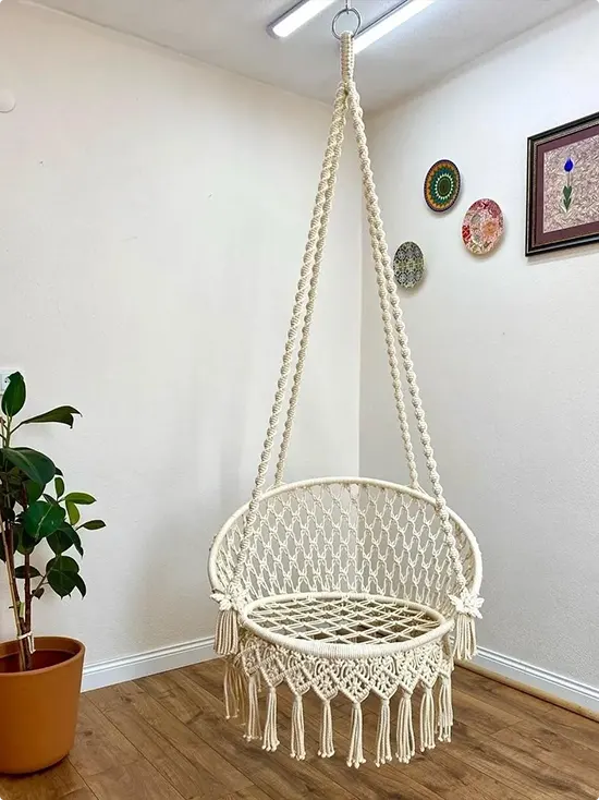 Classic Cream Macramé Circle Chair in a Corner
