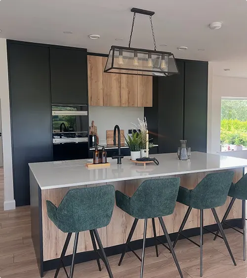 Matte Black With Wood Counters