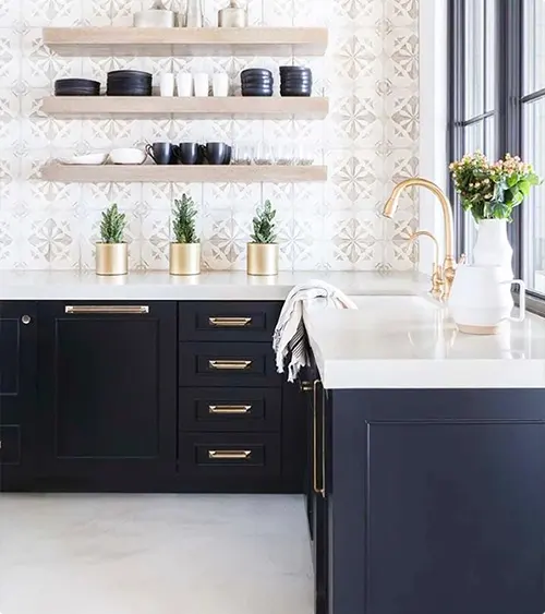 They add detail and interest without needing a bunch of decor. Black cabinets create a solid frame for all that pattern.