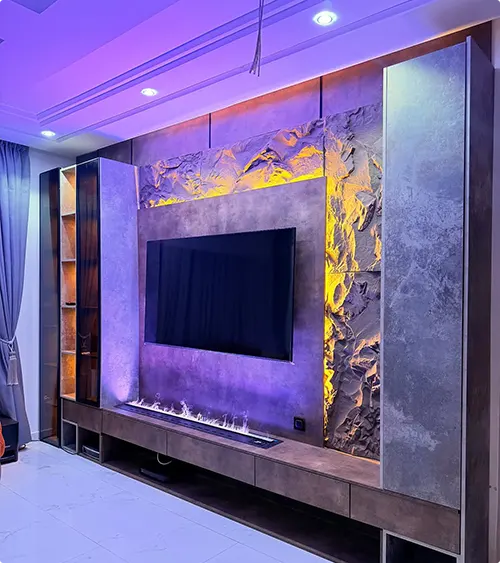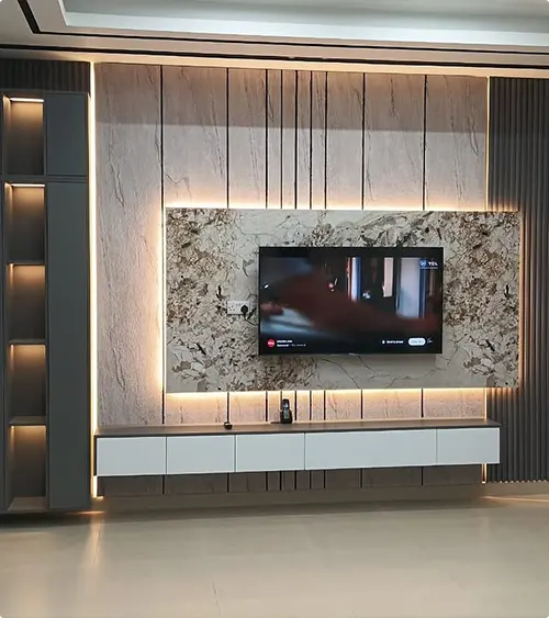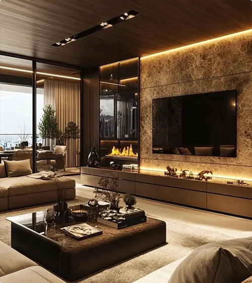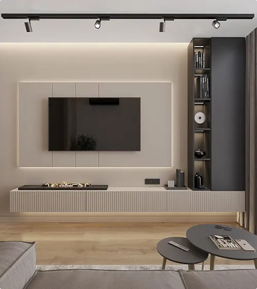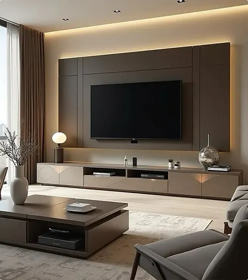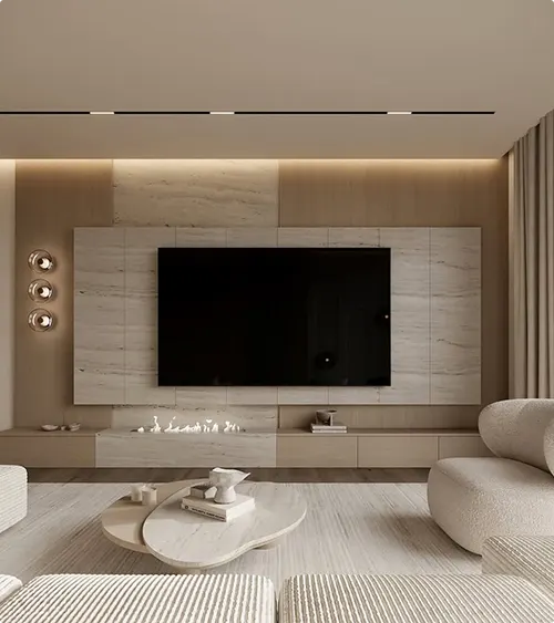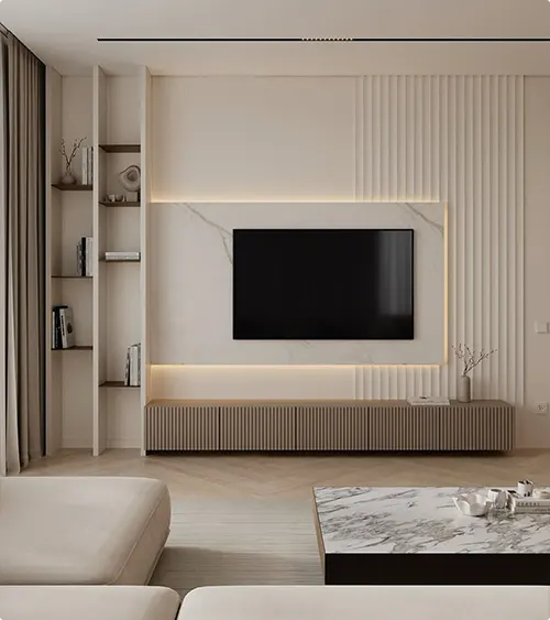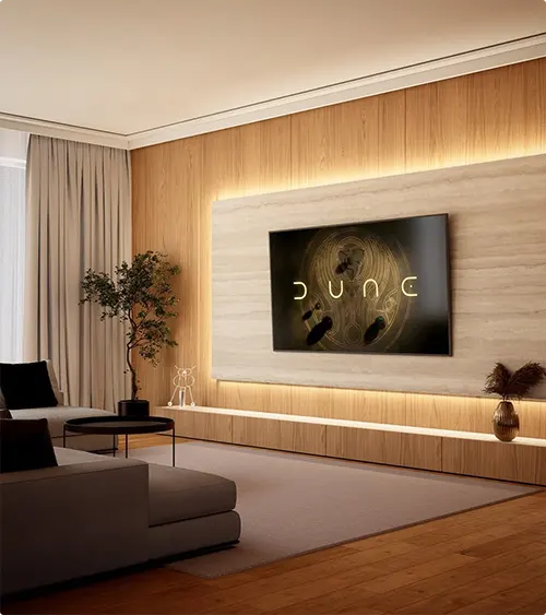 When all these elements come together, the TV wall doesn’t just hold your screen, it becomes a luxurious focal point that makes the entire room feel elegant and well-designed.