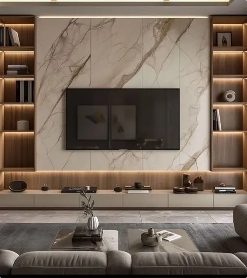 A TV wall looks luxurious when it feels like the centerpiece of your living room. Using high-quality materials such as marble, natural wood, textured stone, or sleek panels instantly adds elegance.