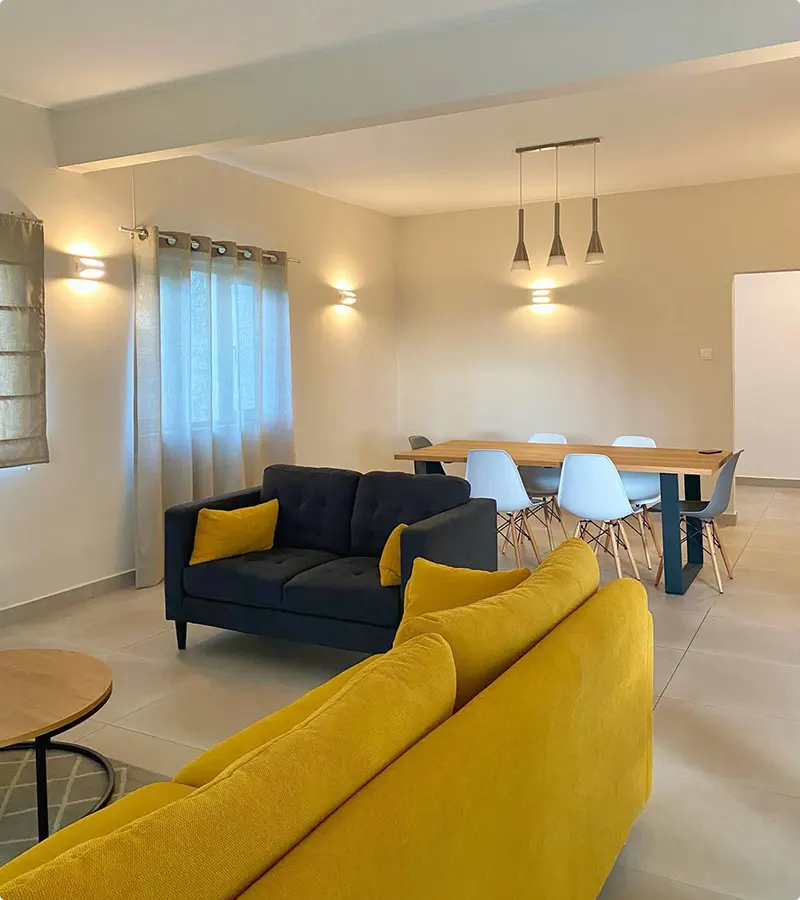It’s a bold combo, not gonna lie, but it totally works because the yellow brings all the energy and warmth, while the navy keeps it from feeling too chaotic. Plus, the minimal decor and neutral walls let those main furniture pieces really shine. It’s a great way to add personality without going overboard!