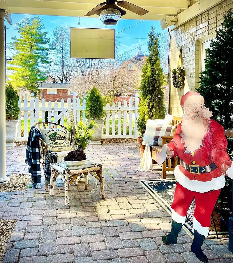 It works because it’s not over-the-top, you can still sit out here with hot cocoa and actually enjoy the decorations instead of feeling like you’ve been swallowed by tinsel.