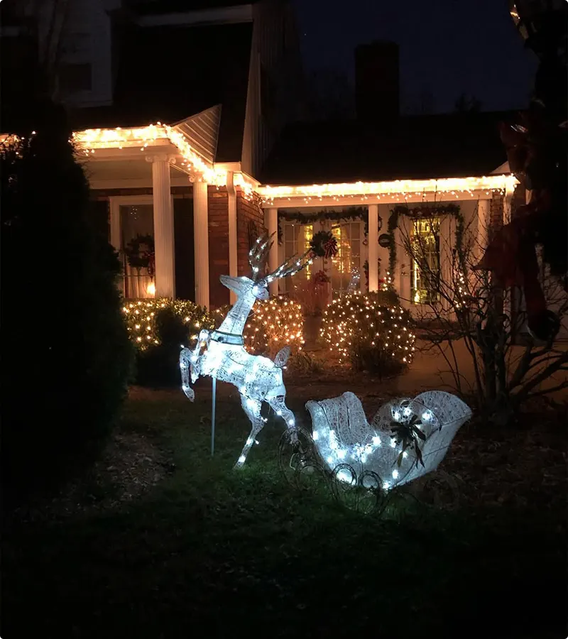 The key here is not over-decorating; just let the glowing reindeer be the main event in the yard. It’s chic, and honestly, a lot less hassle than wrapping a whole oak tree in lights.