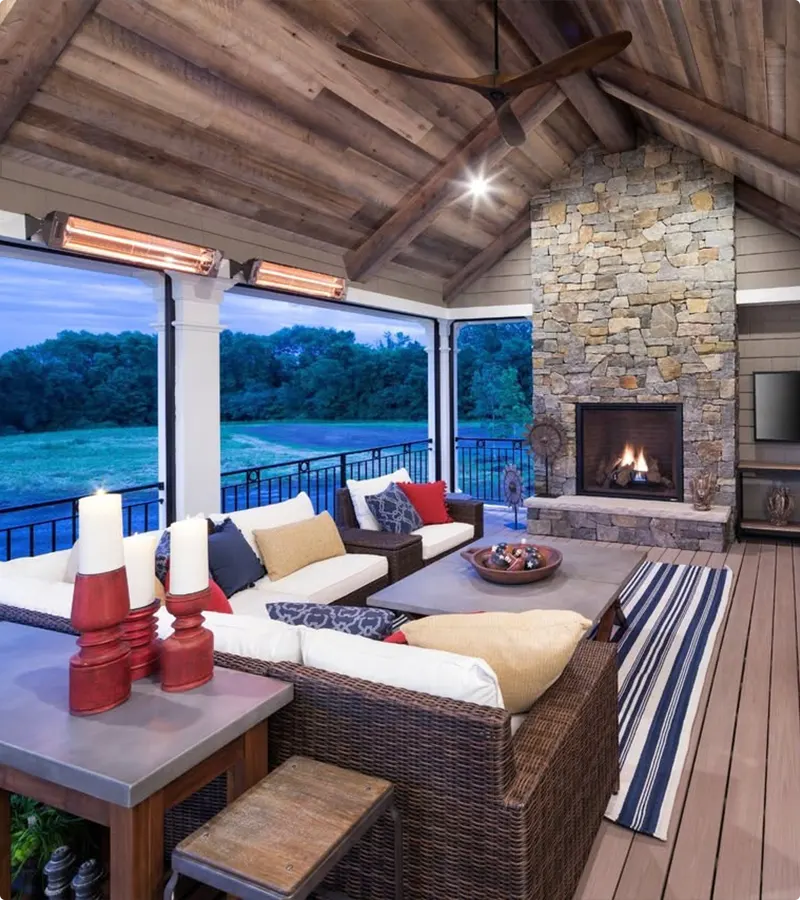 Plus, those overhead heaters, which is just genius, by the way, ensure you can actually use this beautiful room even when the temperature dips a little.