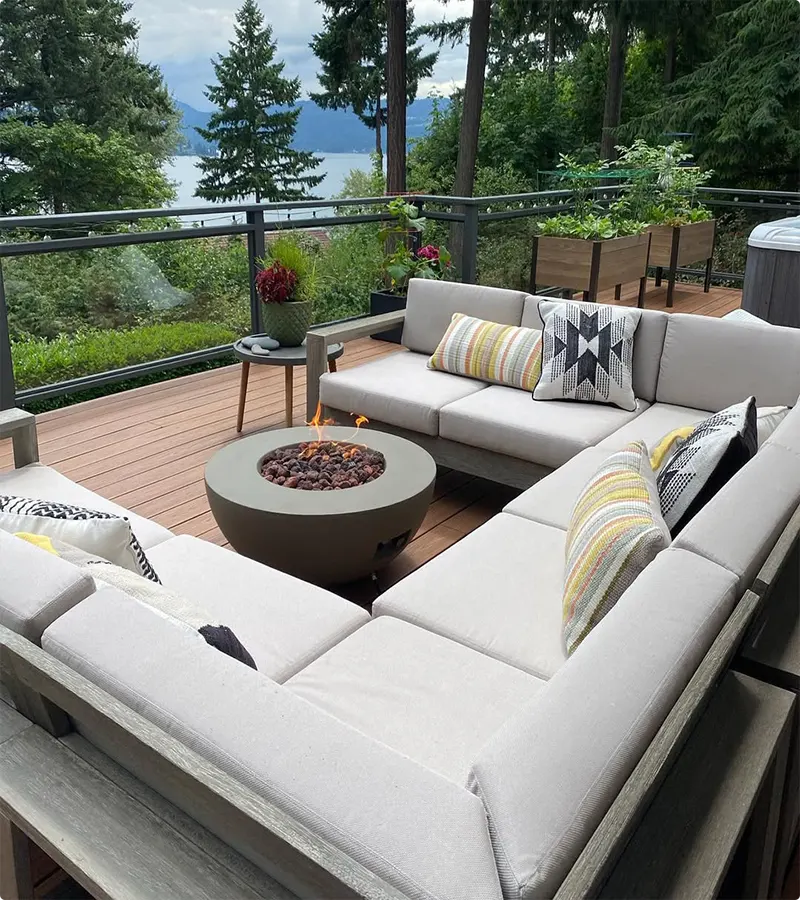 Plus, that round, fire-pit table is a brilliant space saver, keeping everyone warm without taking up too much deck space.
