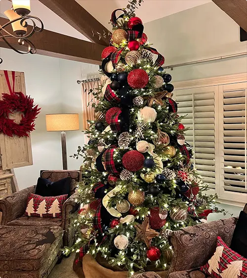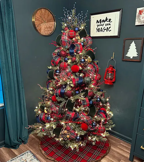 You can also go for a Traditional Plaid Theme, filled with red, green, and navy colors that make your tree look timeless and fancy.
