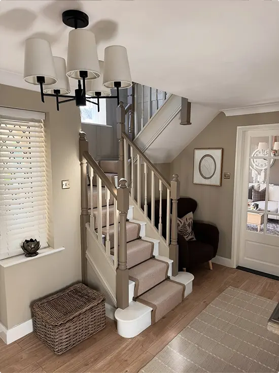 The stairs already give you structure. A built-in focal point, if you think about it. So instead of fighting the layout, you can lean into it and make it work for you.