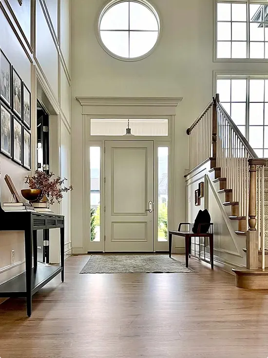 Round Window Entryway With Tall Ceilings