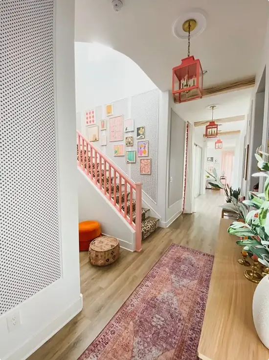Pink Railing With a Gallery Wall Staircase