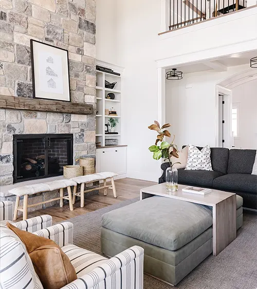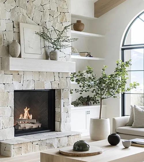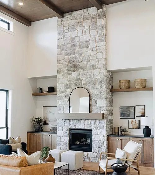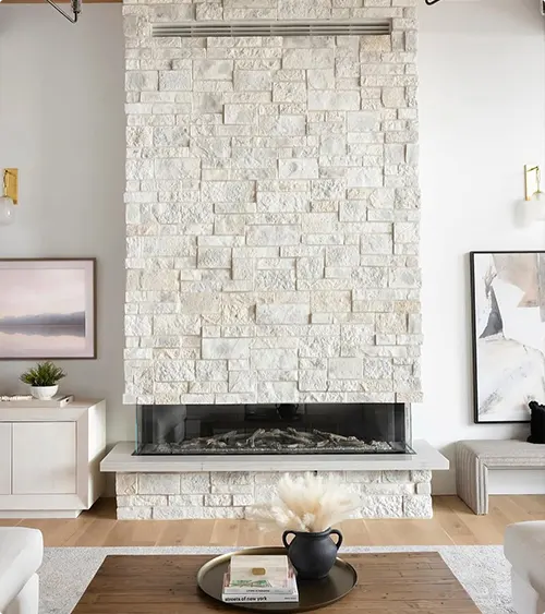 Or you can keep it sleek and modern with smooth, stacked ledger stone in soft grays and whites. Want something in between? There’s literally a style for that too.