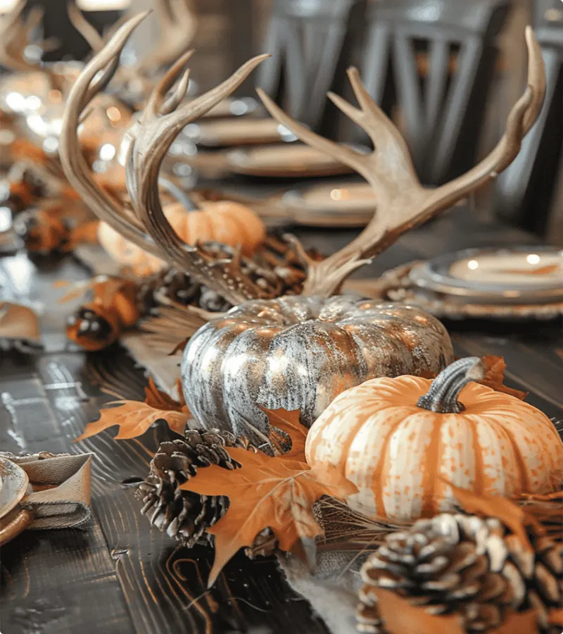 Elevated Rustic Glam with Antlers and Mercury Glass Pumpkins