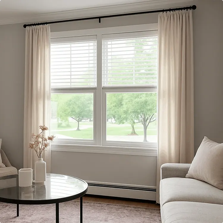 Beige curtains feel soft the moment you put them up. They don’t fight with light gray walls, they just sit there and make everything feel calm and settled.