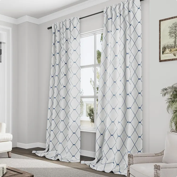 Geometric curtains bring pattern into the space. Lines, shapes, small details that catch your eye.