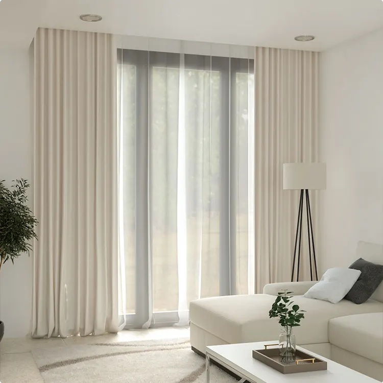 Ivory curtains are softer than white. You still get that light feel, but without the sharp brightness.