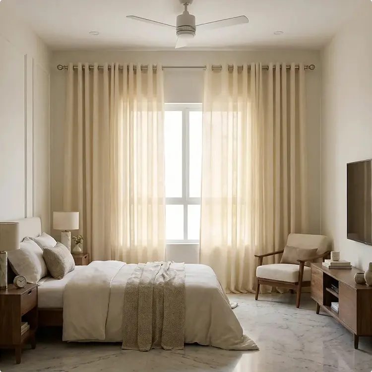 Cream curtains bring a cozy touch fast. The space feels warmer without doing much.