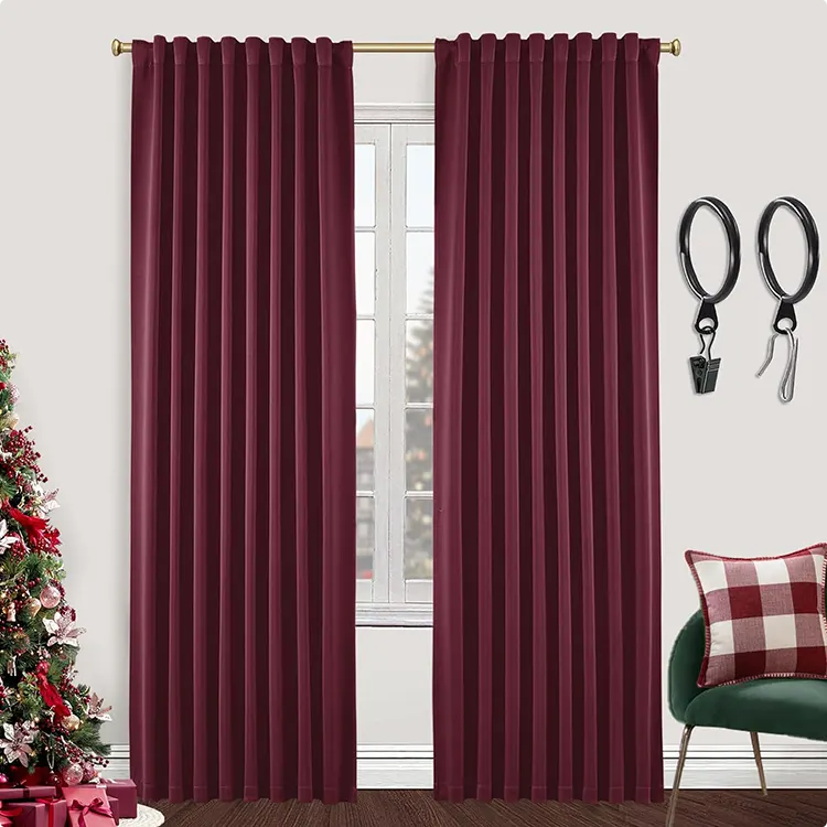 Burgundy curtains make the room feel warm and a bit deeper. There’s a richness to it.