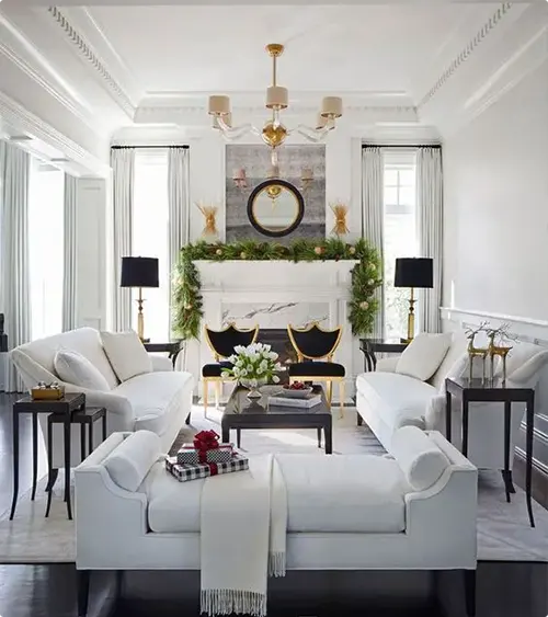 This room is dressed up for the holidays but still feels elegant. The garland on the mantel is simple and classic.