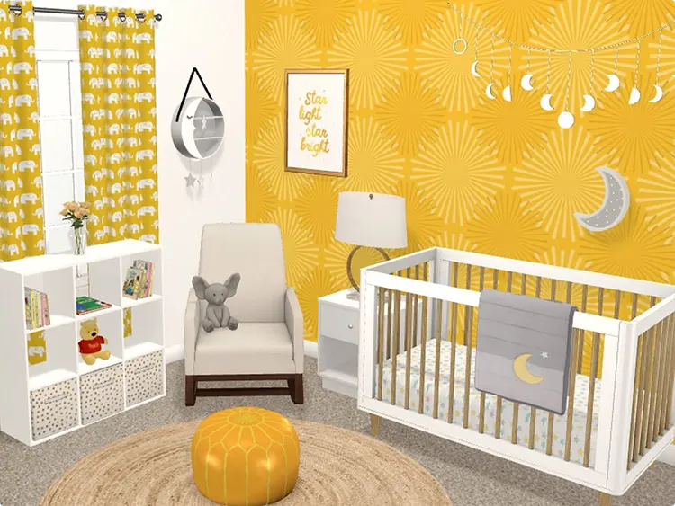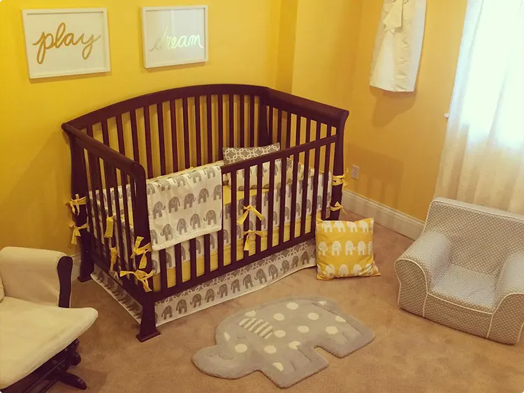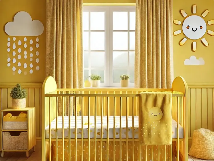 You can add yellow through curtains, rugs, pillows, wall art, or crib bedding. Even one or two yellow accents can change the mood of the room without committing to full yellow walls.