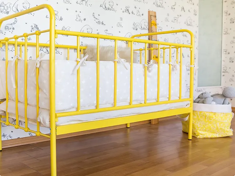 Bright Yellow Metal Crib Frame