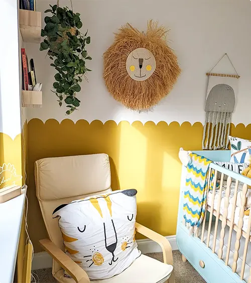 Scalloped Yellow Accent Wall With Lion Decor