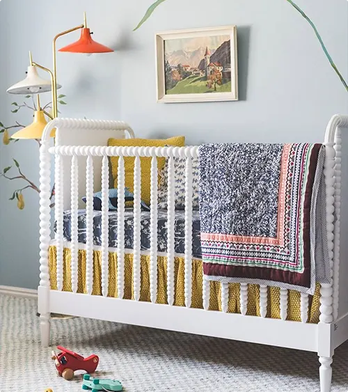 The crib itself has a spindle design that adds visual interest. You don’t need much else.